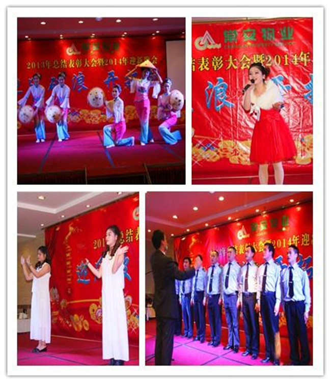 常安物業(yè)年終總結(jié)表彰大會(huì)暨迎新晚會(huì)于2014117日在學(xué)府路順德佬圓滿結(jié)束。整個(gè)活動(dòng)分為三個(gè)環(huán)節(jié)。12013年終總結(jié)大會(huì)。張總在會(huì)議上對(duì)公司一年主要工作、取得的成績(jī)做了通報(bào),對(duì)2013年表現(xiàn)優(yōu)秀的服務(wù)中心、個(gè)人給予表彰。2、迎新晚會(huì)。各部門、服務(wù)中心的精彩表演;搞笑、歡樂的游戲;激動(dòng)人心的抽獎(jiǎng)將整晚的活動(dòng)拉向高潮。3、歡樂晚宴。我們共同舉杯,開懷暢飲,慶祝2013年的輝煌,迎接新一輪的挑戰(zhàn)。