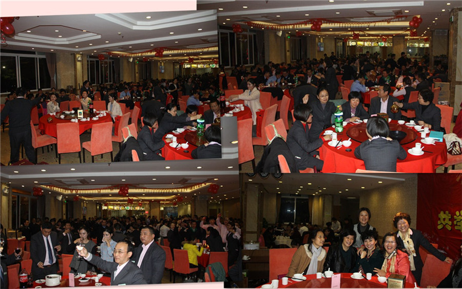 5、歡樂晚宴。全體員工和退休員工歡聚一堂,共同舉杯,開懷暢飲,慶