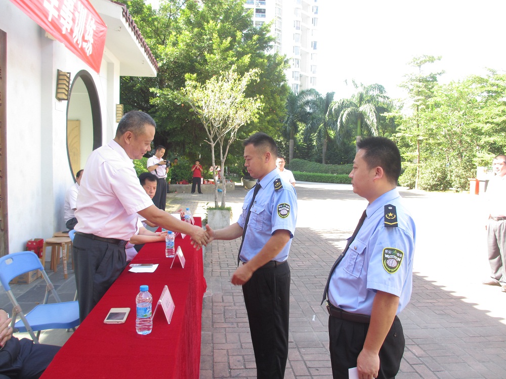 2016年7月29日下午15時,深圳市常安物業(yè)服務(wù)有限公司組織退伍軍人在前海花園三期廣場舉辦了“常安物業(yè)2016年慶八一軍事訓(xùn)練”活動。在常安物業(yè)公司領(lǐng)導(dǎo)的高度關(guān)注下,退伍軍人不懼高溫的天氣,頂著酷暑完成交通指揮手勢、疊軍被、消防演習(xí)三個活動內(nèi)容,為鼓勵軍事化管理工作的持續(xù)開展,本次活動頒發(fā)了一、二、三等獎。最后,張武董事長進(jìn)行了精彩的講話,鼓勵退伍軍人把部隊(duì)嚴(yán)明的組織紀(jì)律,嚴(yán)謹(jǐn)?shù)墓ぷ髯黠L(fēng),嚴(yán)肅的工作態(tài)度和不怕吃苦、勇于拼搏、甘于奉獻(xiàn)的好思想、好傳統(tǒng)、好作風(fēng)帶到各自的工作崗位之中,發(fā)揮“退伍不褪色”的軍人品質(zhì)。