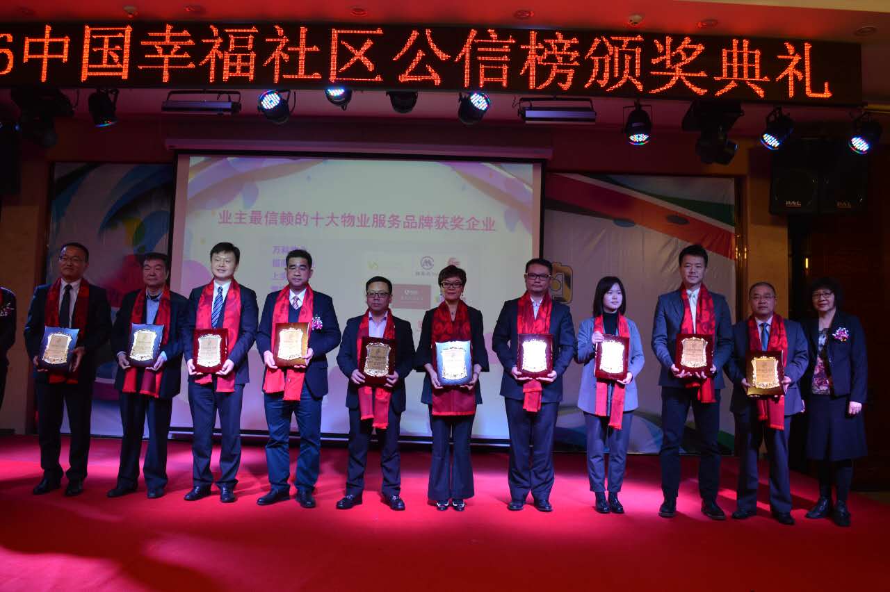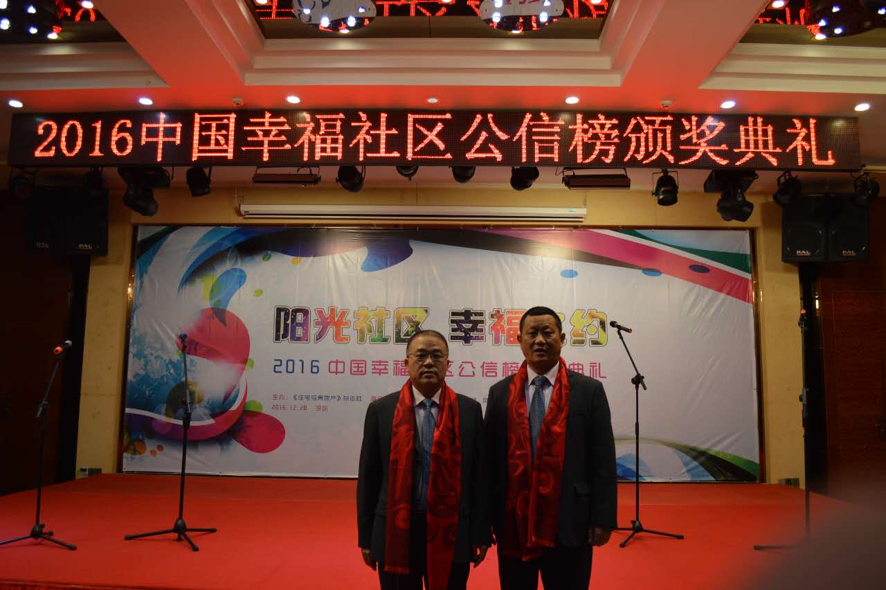 由《住宅與房地產(chǎn)》雜志主辦,物業(yè)管理微信平臺協(xié)辦的“2016中國幸福社區(qū)公信榜頒獎典禮”,歷經(jīng)15天逾百萬人積極投票,2016年12月28日分別公布了7個獎項的獲獎?wù)呒邦C發(fā)榮譽獎牌。