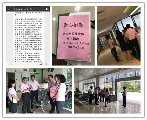 公司接到家屬消息后,非常關(guān)心,當(dāng)即安排人員及工會(huì)主席前往醫(yī)院探望并送上公司的關(guān)懷及5000元的慰問(wèn)金。隨即在公司內(nèi)部及時(shí)組織全體員工發(fā)起了為龍曉明“傳遞愛(ài)心,奉獻(xiàn)你我”的捐款活動(dòng),公司上下反應(yīng)迅速,踴躍捐助。截止2017年9月6日,常安物業(yè)公司及全體員工共為龍曉明籌募善款35596元。2017年9月7日上午,公司領(lǐng)導(dǎo)班子等一行人前往醫(yī)院探視,將捐款送至龍曉明的家屬手中。公司領(lǐng)導(dǎo)向家屬表達(dá)了對(duì)龍曉明及家屬的關(guān)心和慰問(wèn),并鼓勵(lì)家屬積極面對(duì)認(rèn)真治療,也祝愿龍曉明能夠戰(zhàn)勝病魔,早日康復(fù)。公司工會(huì)會(huì)協(xié)助家屬通過(guò)向政府部門(mén)申請(qǐng)等形式,爭(zhēng)取獲得更多的社會(huì)扶助資金,從而減輕龍曉明家庭的經(jīng)濟(jì)負(fù)擔(dān)。