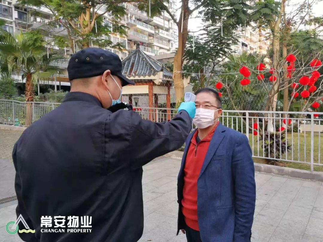 統(tǒng)計(jì)返深人員的信息(包括服務(wù)中心的員工)及外來流動(dòng)人員情況,做好體溫測(cè)量和記錄。截止2020年1月30日,我司共計(jì)采購紅外體溫儀器70余套,對(duì)在管項(xiàng)目業(yè)主/住戶、外來人員和值班人員共計(jì)測(cè)量體溫五千余次。確保常安物業(yè)管理區(qū)域業(yè)主及公司員工生命安全”